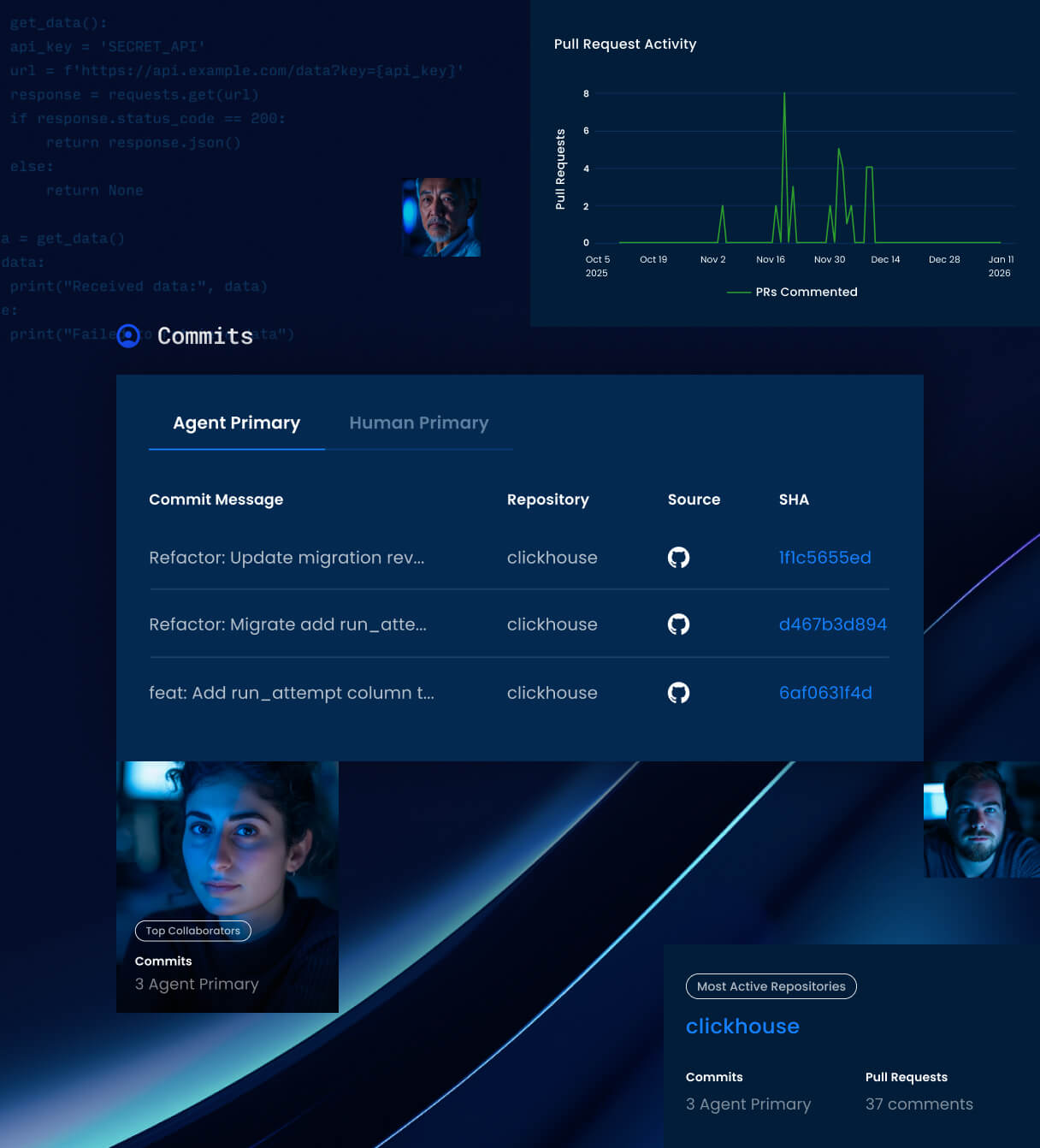 Govern every identity in your SDLC — human identities (internal and external developers), non-human identities (service accounts, bots), and AI agents. Detect risky behavior and enforce least privilege.